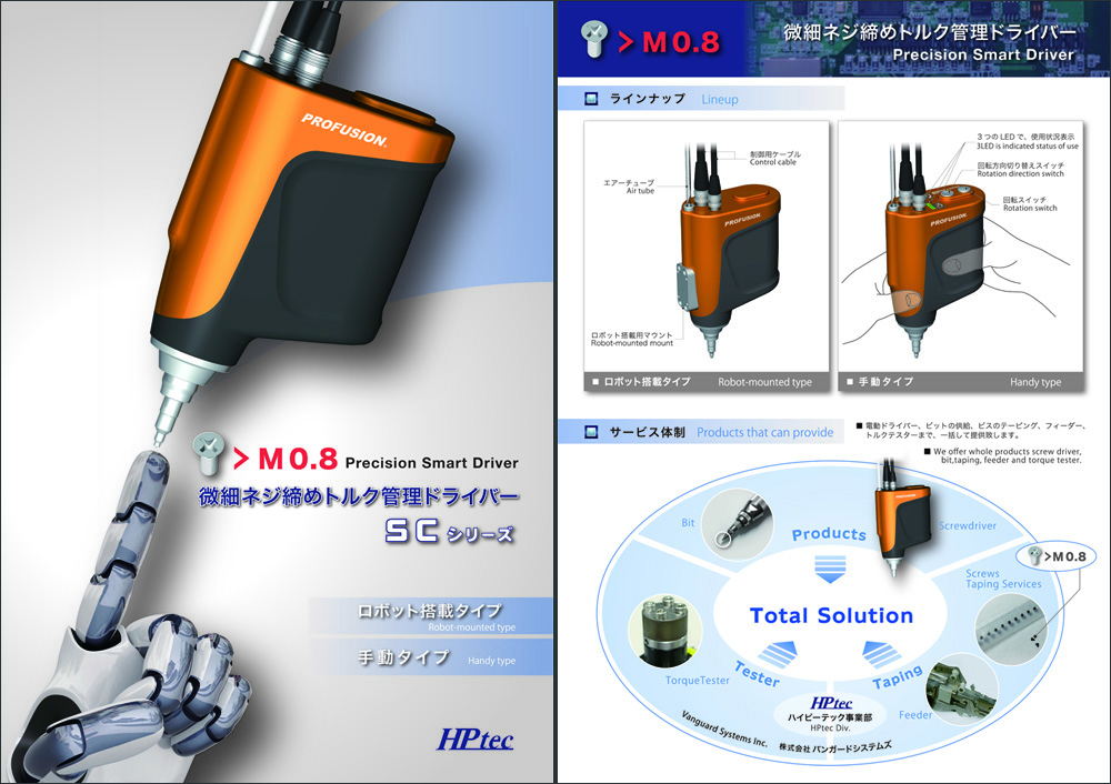 こちらが青梅ブース、エルグデザインが協力した「世界初!M0.8の微細ネジを締める事のできる電動ドライバ」です。