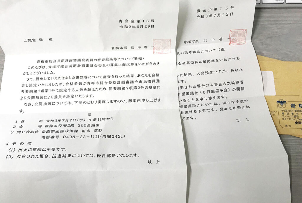 6月に「青梅市総合長期計画審議会委員募集」の案内がありました。