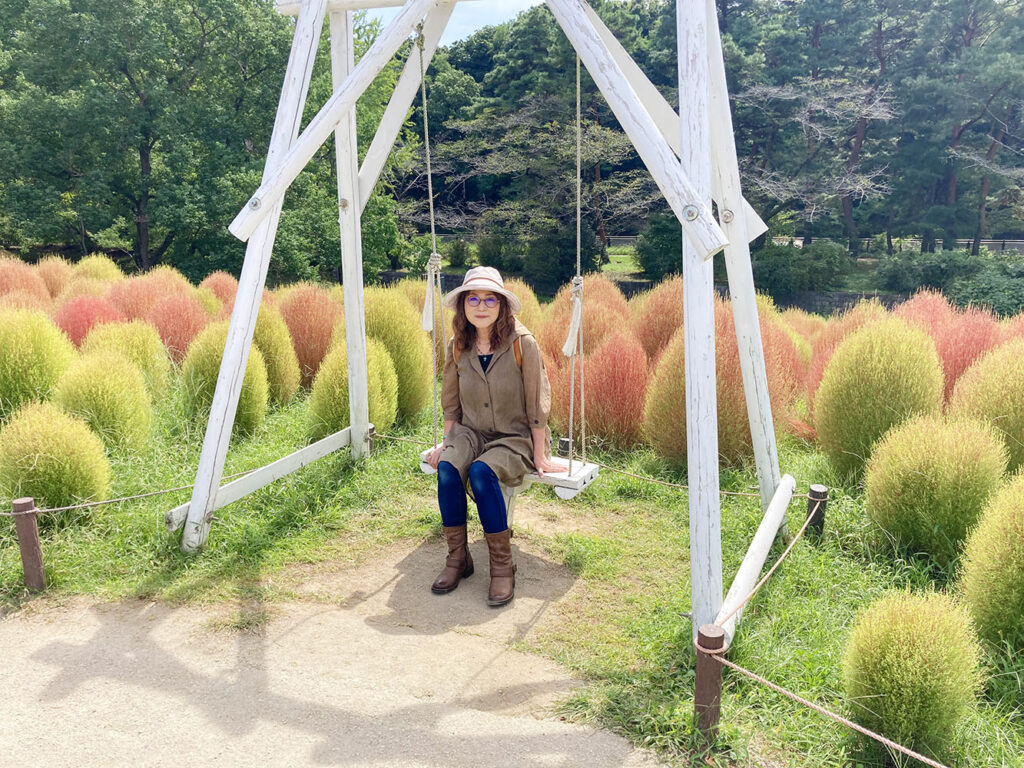 コキアの紅葉もブランコも(もちろん本人も)メルヘンチックで良いですね。
