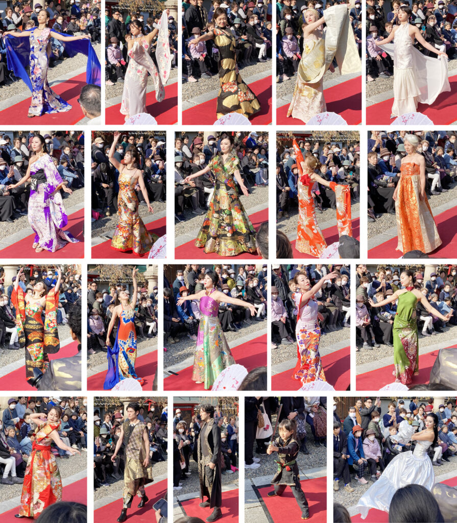 神社の参道がランウェイというのも、着物リメイクドレスにベストマッチです。