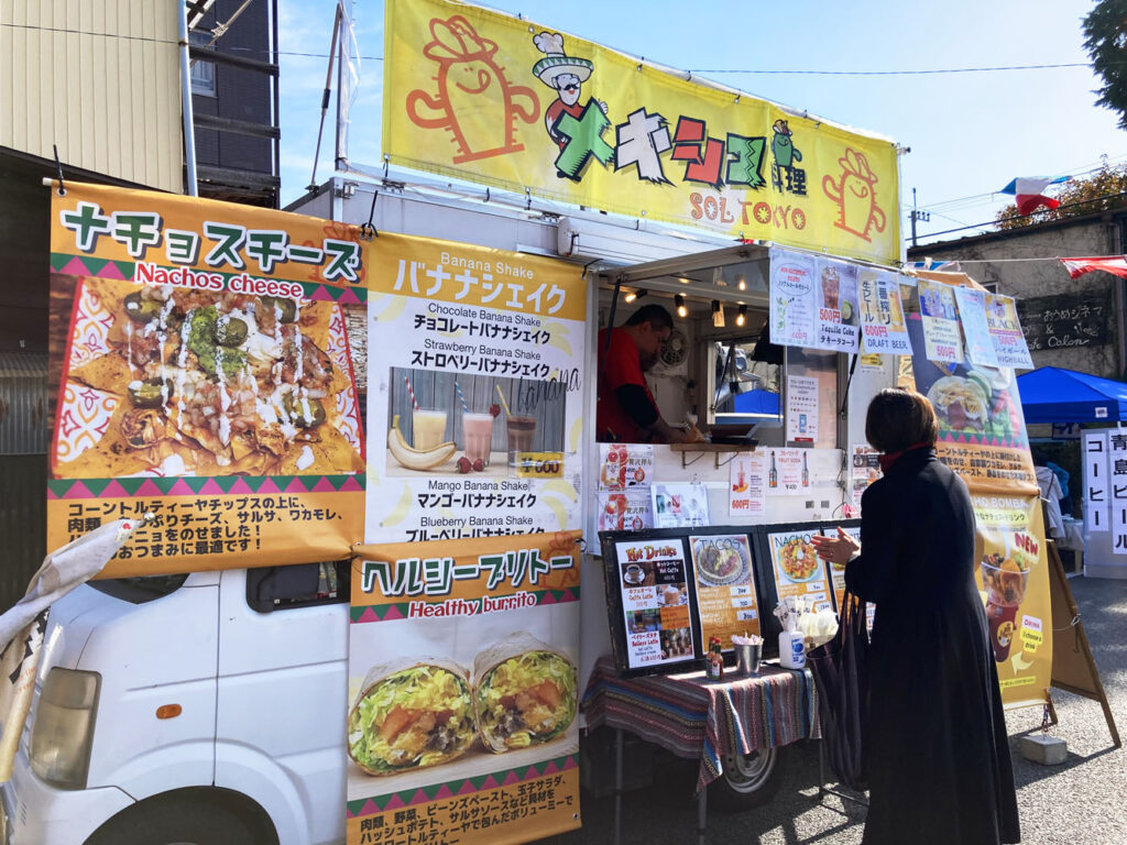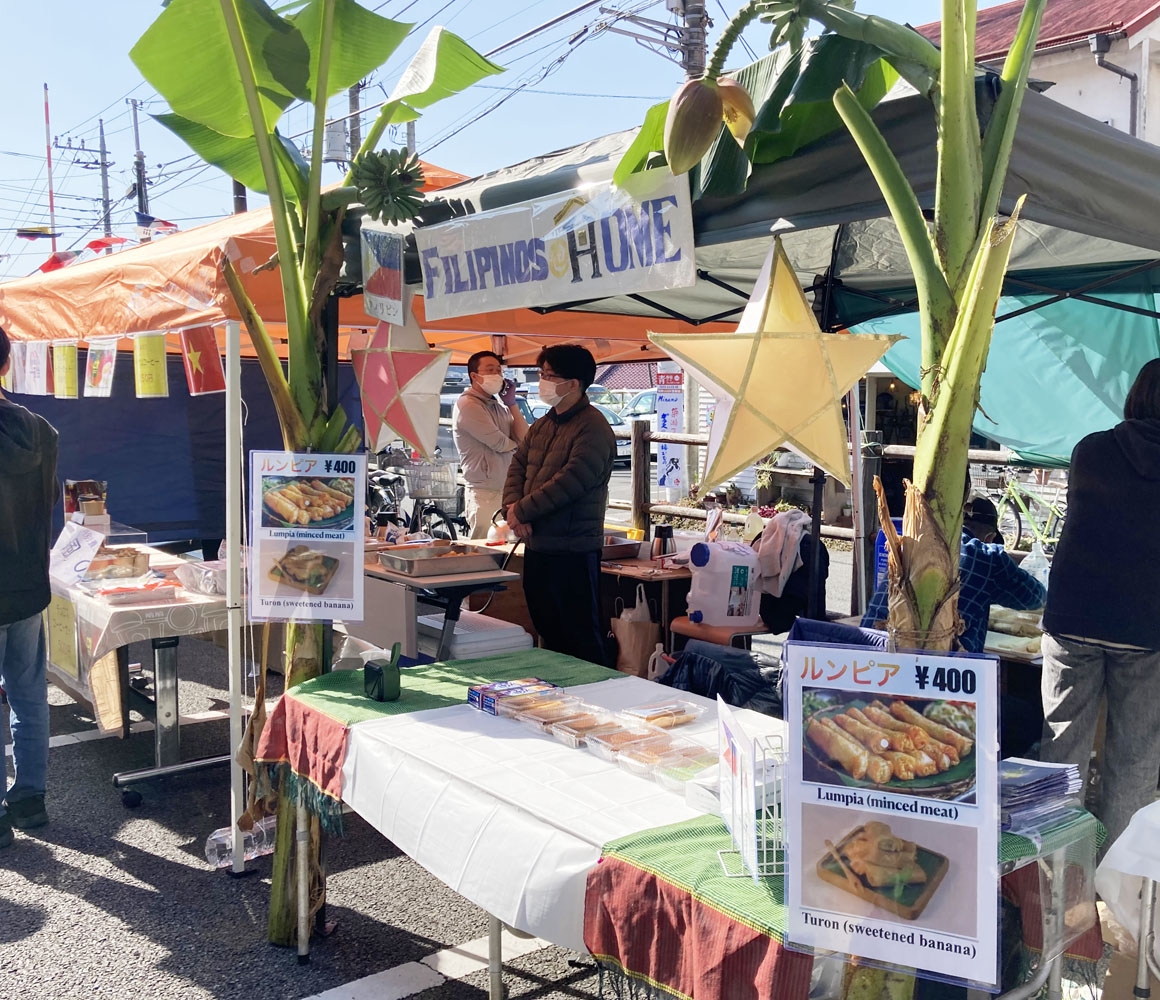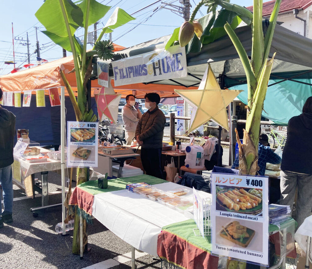 駅前駐車場は、多国籍屋台や野外ステージで盛り上がっていました。