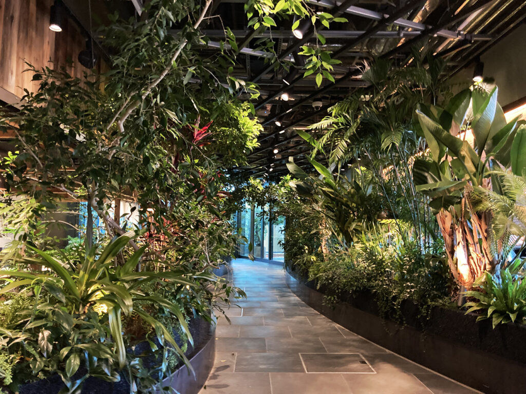 高層階28・29階にある「ルフトバウム」は、都心上空150mに500本以上の大規模植物が配され、良い香りとBGMが流れる都会の別荘地というコンセプト。