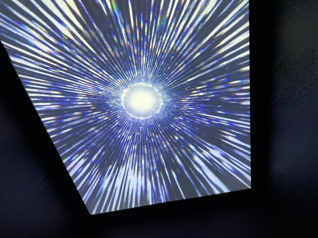 14階から上のエレベーターの天井は、どんどん空に上昇して行くイメージの映像が写し出されます。(写真はサイトより)