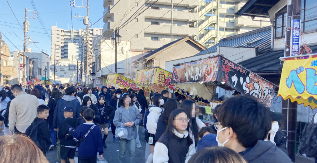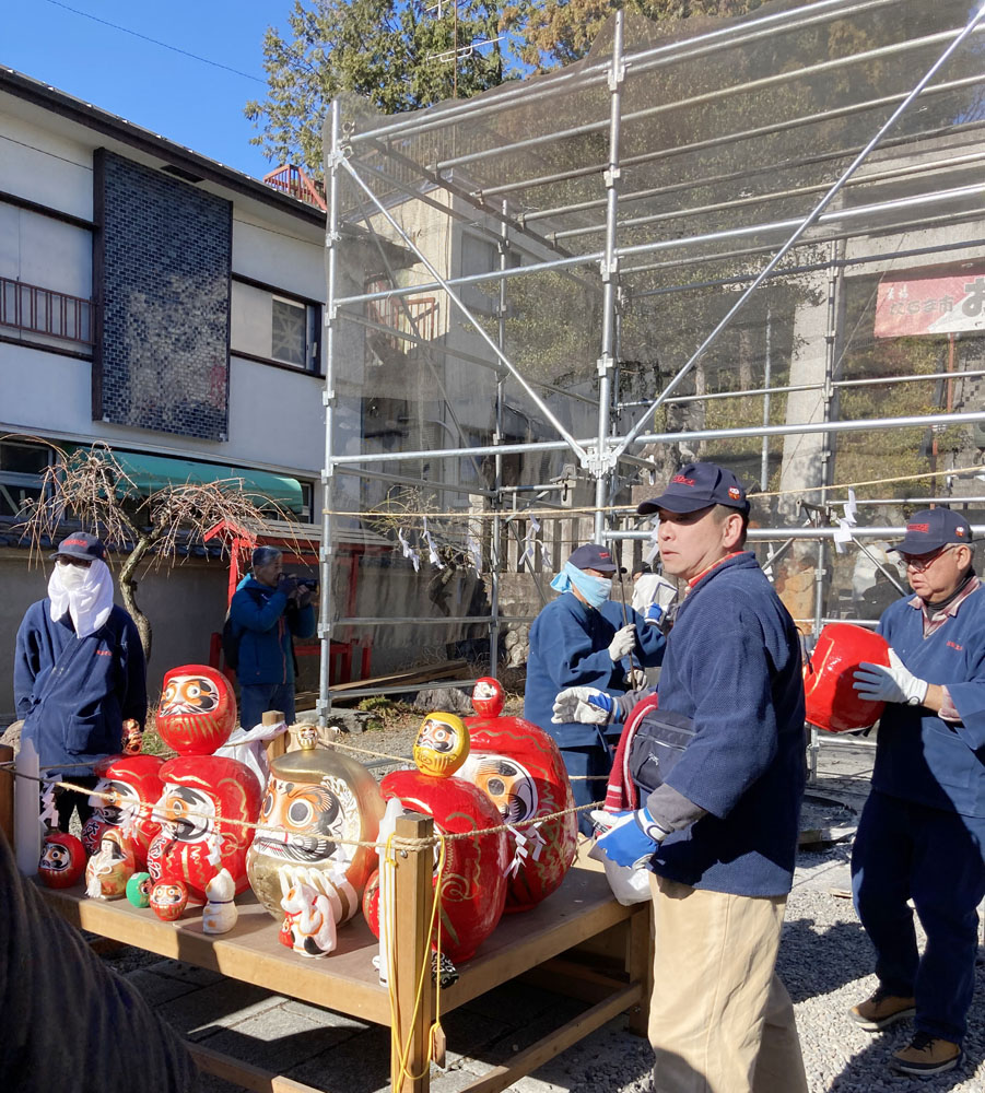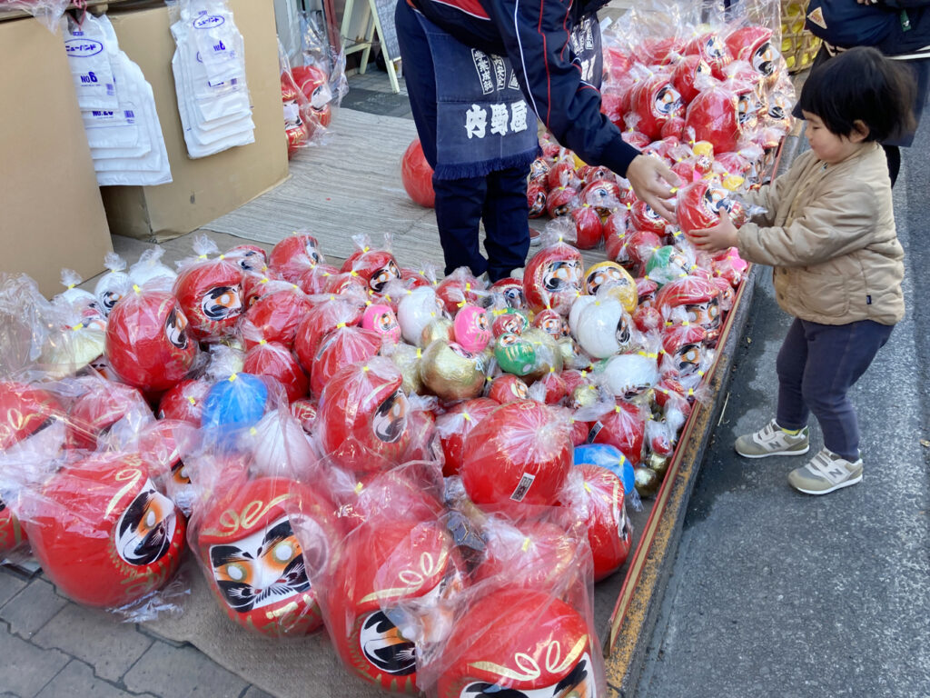 旧青梅街道沿いには約300の露天や約40店舗のダルマ屋さんが並び、バスも車も交通規制で完全歩行者天国です。