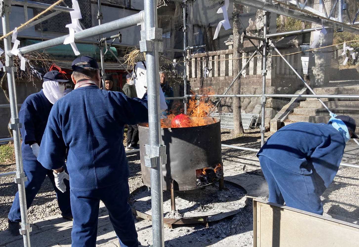 ドラム缶の炎の中に、どんどんダルマが投げ込まれて煙と一緒に昇天して行きました。