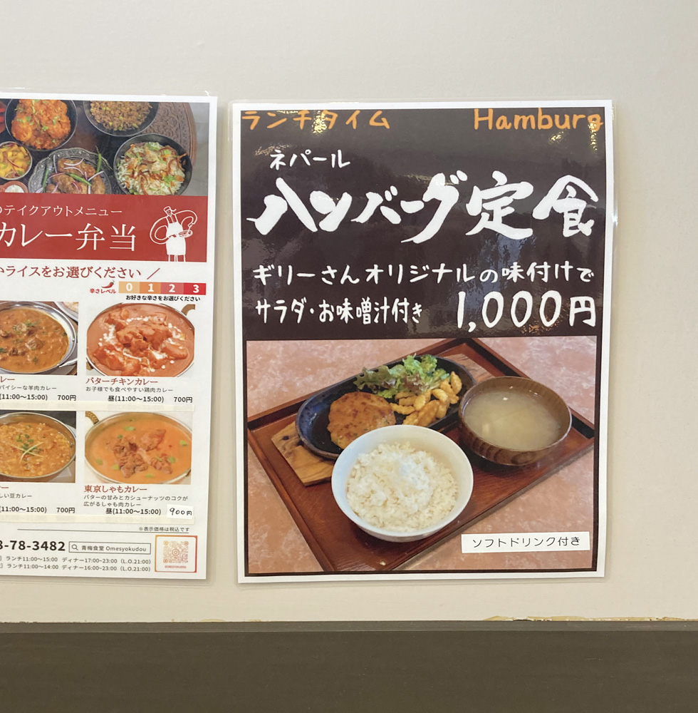 旧青梅街道沿いの「青梅食堂」という地元っぽい名の店に入ったら、なぜかネパール人によるネパール風料理店でした。