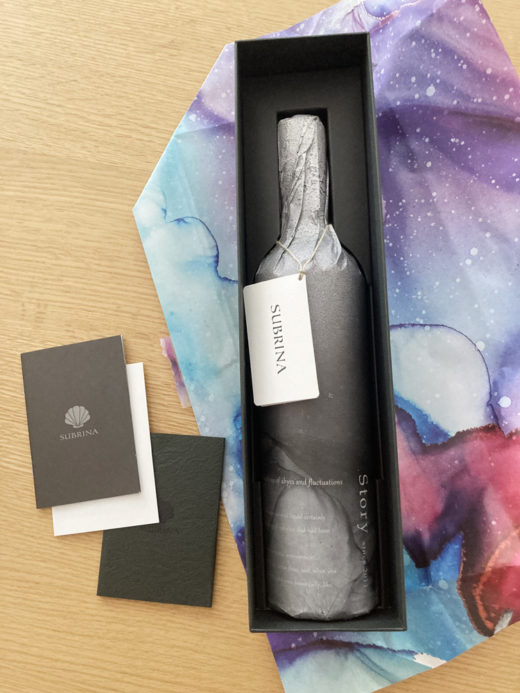 御礼にといただいた「ワイン」と呼ぶにはあまりに存在感のあるボトルは、南アフリカ産のブドウを使用し、南伊豆沖の海底に沈ませて熟成させた*海底熟成ワイン*だそうです。
